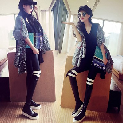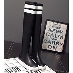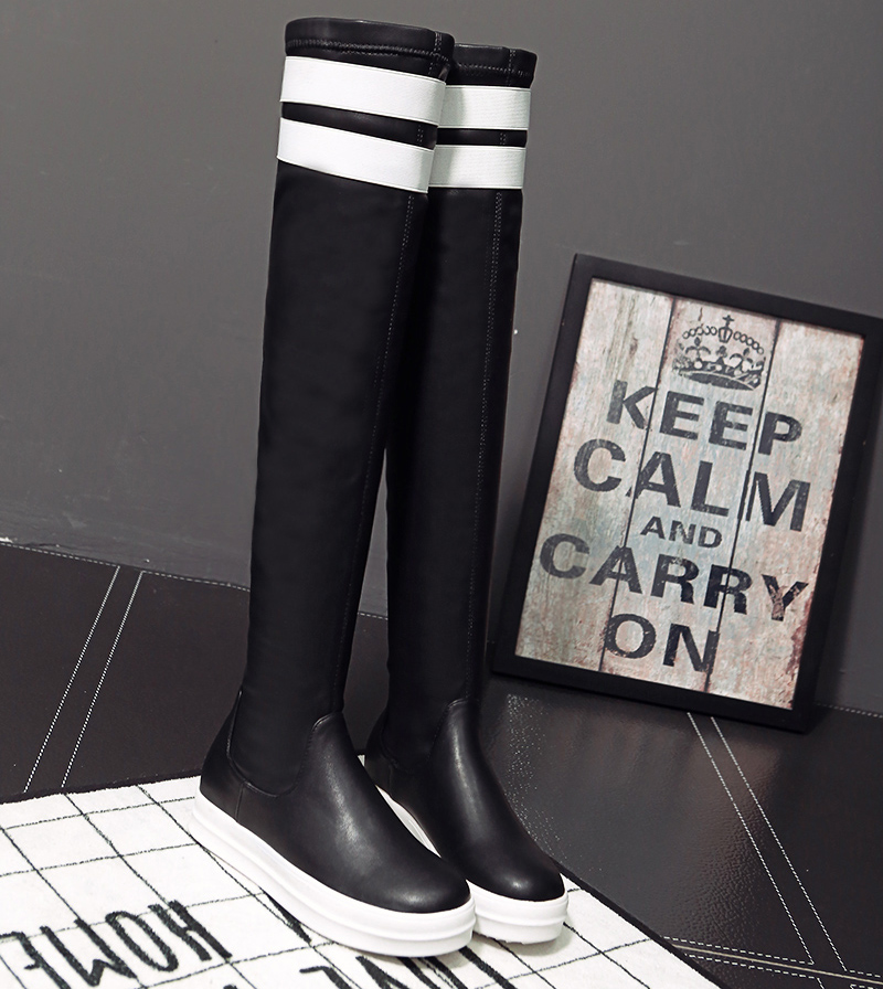 2015冬新品加绒过膝长靴瘦腿弹力靴潮套筒圆头平底松糕长筒靴