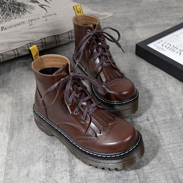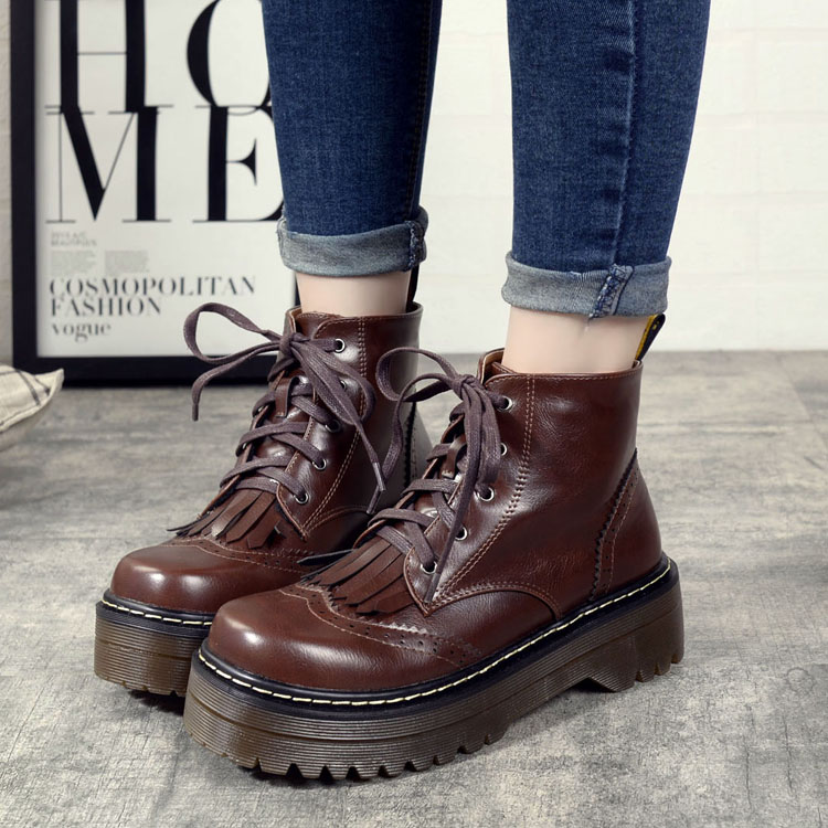 2015冬马丁靴机械靴复古原宿底松糕底流苏短靴及裸靴女短靴