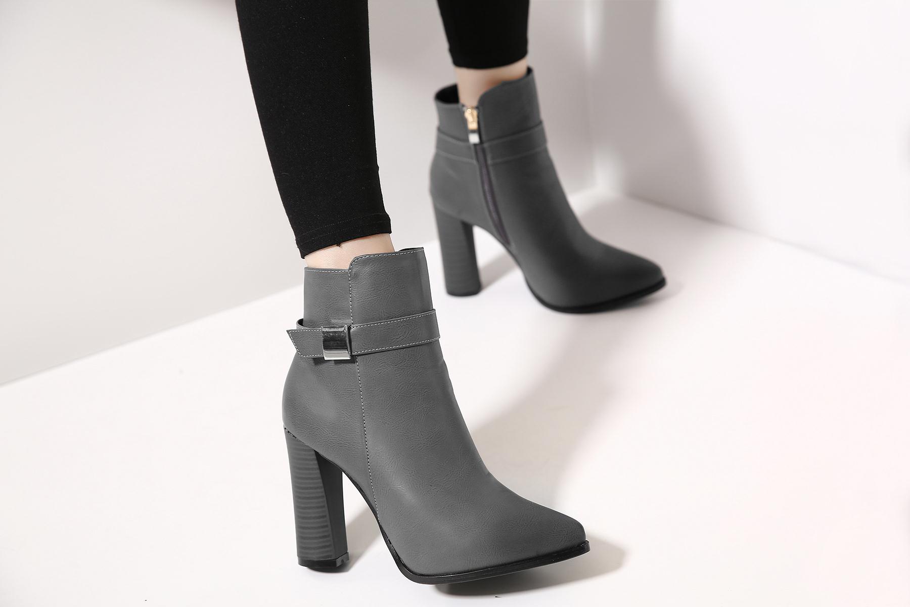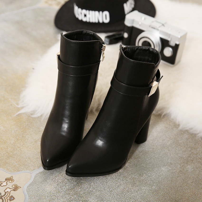 欧美粗跟性感夜店超高跟马丁靴尖头侧拉链英伦短靴百搭职业裸靴女