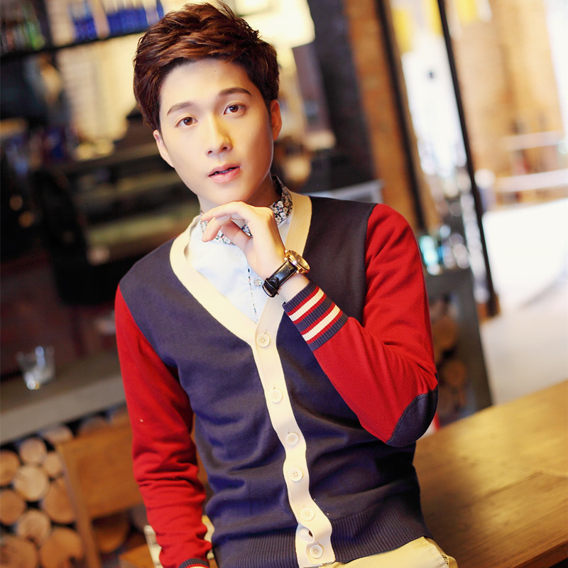 休闲撞色针织开衫