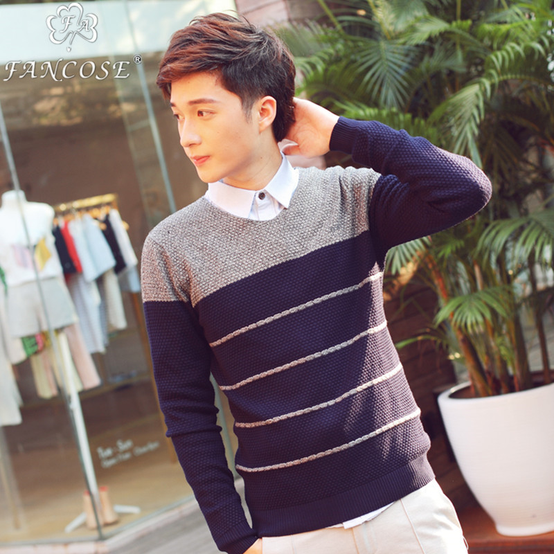 男装拼色薄线衫休闲毛衣