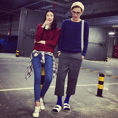 纯色情侣装韩版圆领毛衣