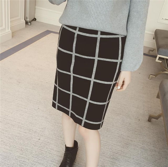 拼色格子女高腰包臀裙