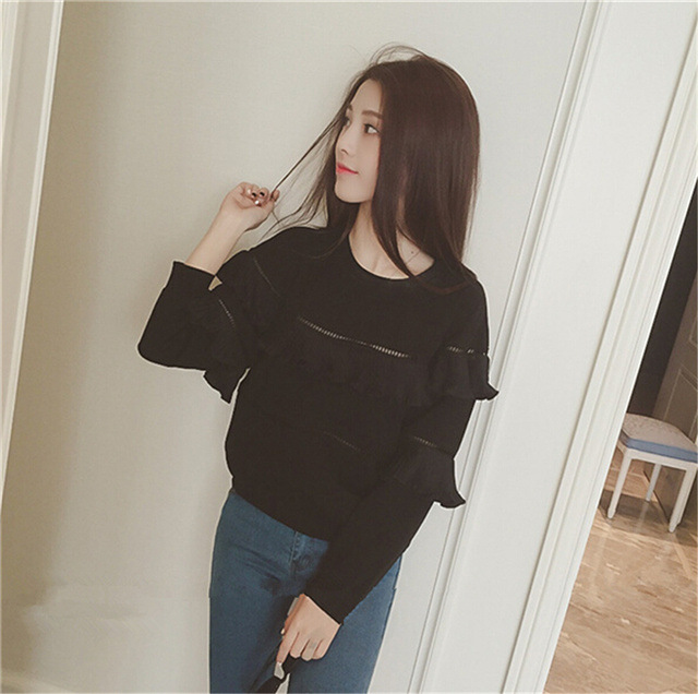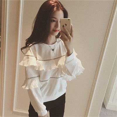 镂空木耳花边圆领上衣潮