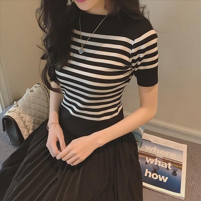 韩版针织衫显瘦条纹T恤毛衣