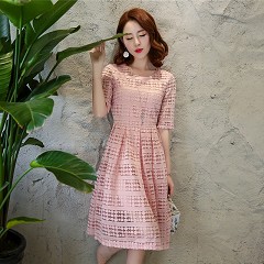 蕾丝镂空中长款连衣裙