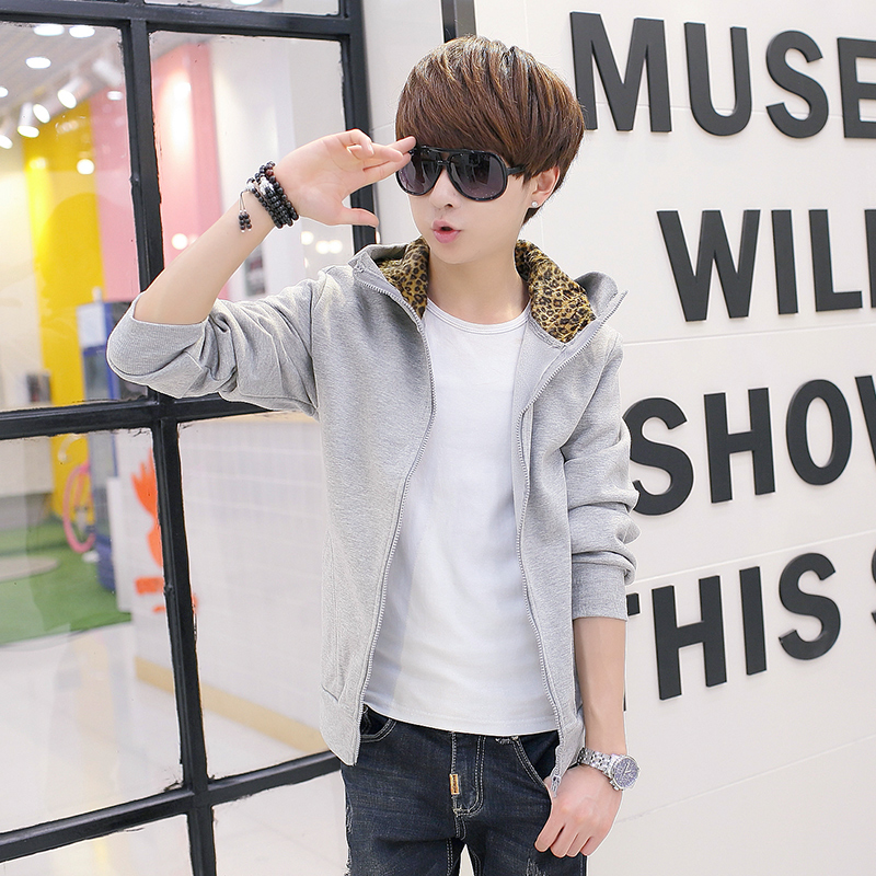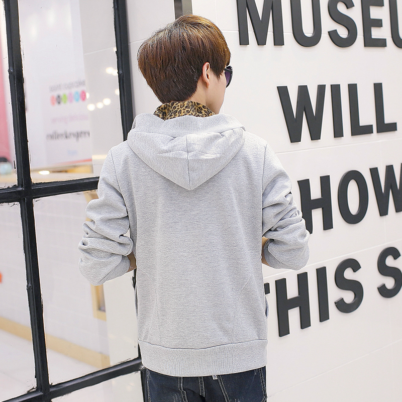 秋冬新款韩版豹纹内胆卫衣外套