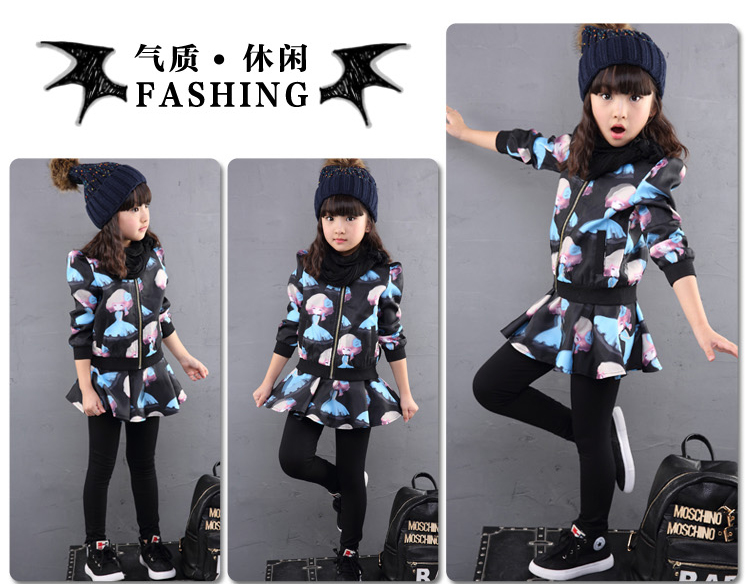 秋季新款韩版潮品印花卡通公主套装连裤裙两件套