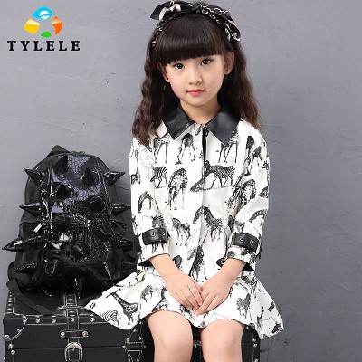 秋季新款爆款韩版抽象动物皮女童套装裙两件套