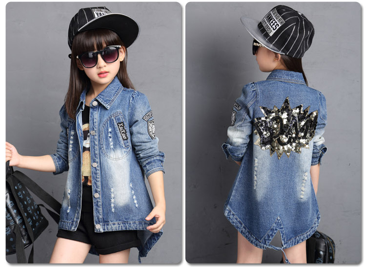 秋季新款爆款女童印花牛仔外套 女童牛仔外套秋装