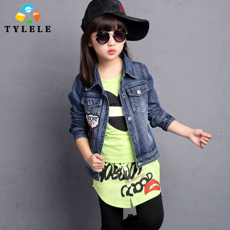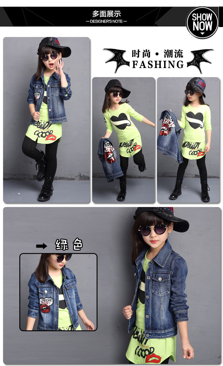 秋季新款爆款女童韩版卡通牛仔外套三件套