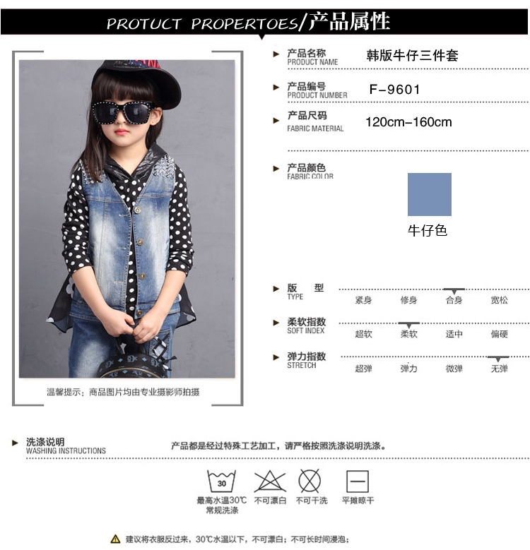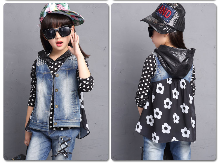 夏季新款爆款儿童韩版女童牛仔外套裤子三件套