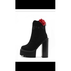 秋冬新款蝴蝶结欧美粗跟马丁靴