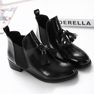 冬季新款流苏圆头短靴