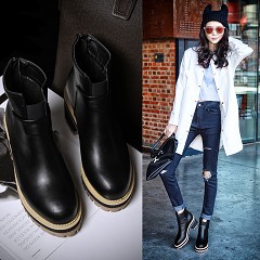欧美冬厚底真皮机车短靴